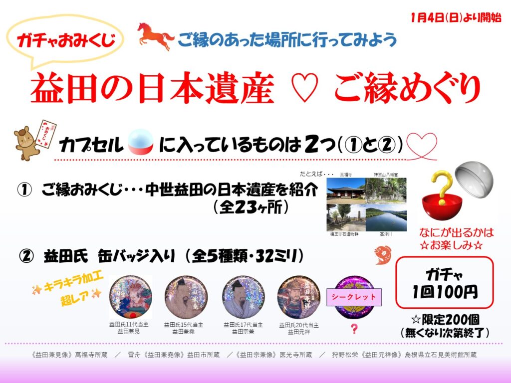1/4(日)より ガチャおみくじ【益田の日本遺産♡ご縁めぐり】開催